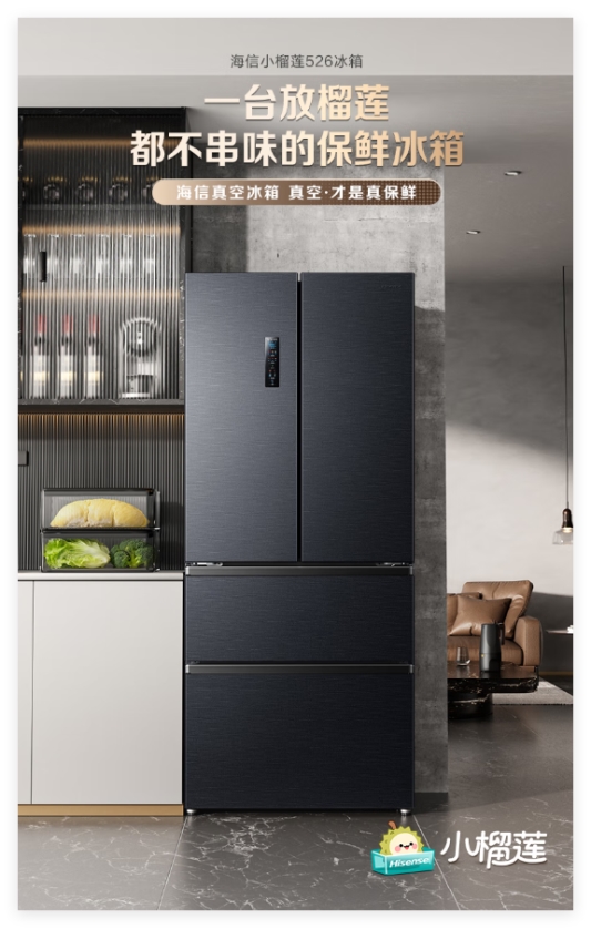 海信今年的新品——海信小榴莲526冰箱主打真空冰温科技,并凭借“保原味、防串味、更入味”的优势,吸引了预算较低又对食材保鲜有较高要求的用户。